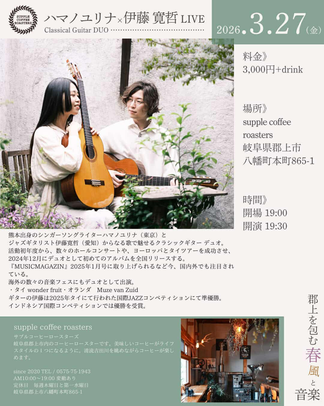 3月27日(金)@岐阜・郡上八幡 Supple Coffee