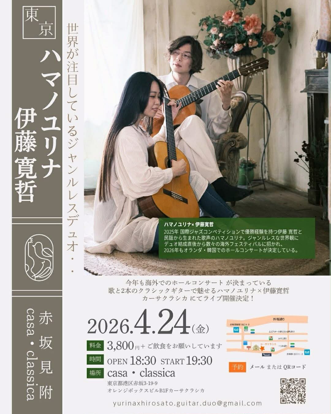 In 2022, he began performing as a classical guitar enchantment folk duo, "Yurina Hamano x Hirosato Ito" and successfully completed a national tour, a European tour, and an Asian tour. In December 2024, the unit's first album will be released nationwide.